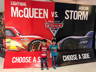帶孖寶去戲院睇戲, 以前真係諗都唔敢諗, 點帶孖寶去睇戲呀? 佢地會無啦啦發癲, 雖然身邊都有朋友帶2、3歲仔女去戲院, 但我同老公都冇辦法想像, 要帶孖寶去, 跟本就係mission impossible! 今年終於等到佢兩個大咗D, 應該冇咁癲, 加上有佢地最like的卡通人物, 所以即管搏一舖, 結果, 竟然冇事喎! 雖然睇反斗車王3果次, 哥哥俾D引擎聲嚇到要坐爸爸大脾, 但總算可以睇晒成套戲, 順利由個戲院行返出黎, 簡直係今年暑假的壯舉!